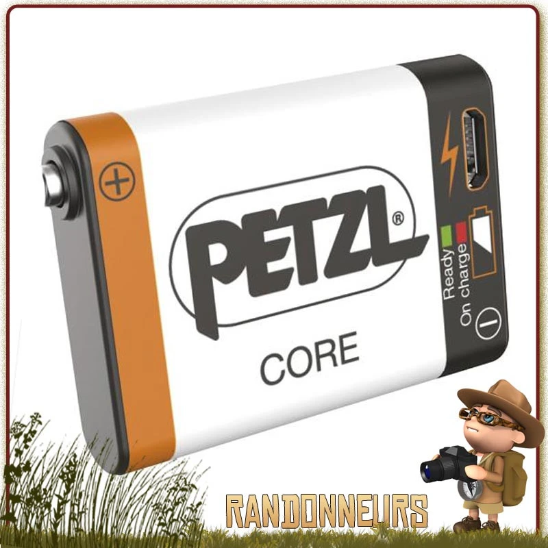 Batterie Rechargeable Petzl Core grande capacité Lithium-Ion 1250 mAh pour lampes frontales compactes Petzl de type « Hybrid Core »