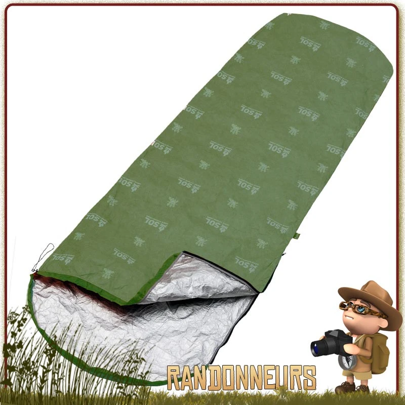 La couverture de survie Bivi Bag SOL aluminisée permet de réfléchir près de 70% de votre chaleur corporelle et ainsi éviter toutes déperditions de chaleur en situation extrême de survie.