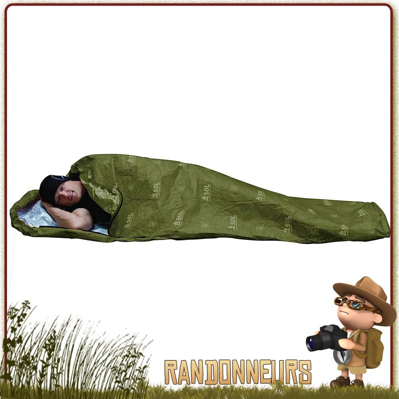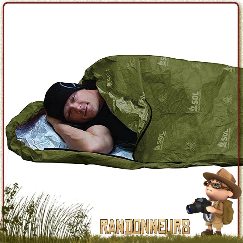 Le Bivi Bag ESCAPE de survie SOL Survive Outdoors Longer SOL est une couverture de survie polyéthylène ultra légère en forme de sac de couchage qui vous permet de vous protéger entièrement des éléments (froid, pluie, vent, neige) en situation de survie pour randonneurs.