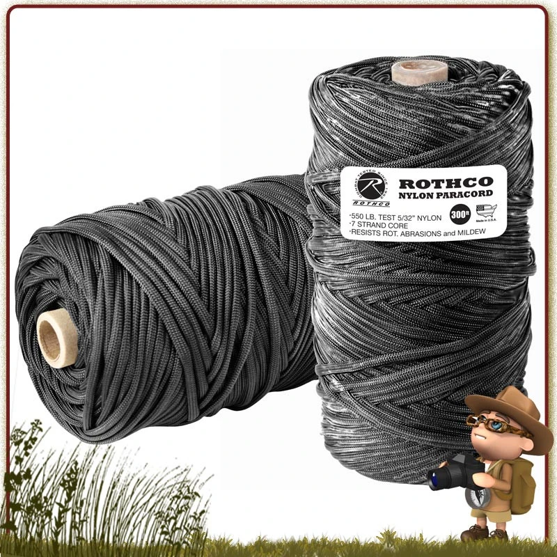 La paracorde (ou parachute cord ou paracord) Rothco est une corde de 3 mm de diamètre environ, résistante à 250 kg (550 lbs), utilisée à l’origine par les militaires américains comme suspente des parachutes lors de la seconde guerre mondiale.
