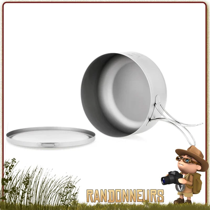 Ce bol en titane ultra light de seulement 225 g est idéal pour la randonnée légère et pourra également faire office de quart ou de mini poêle.