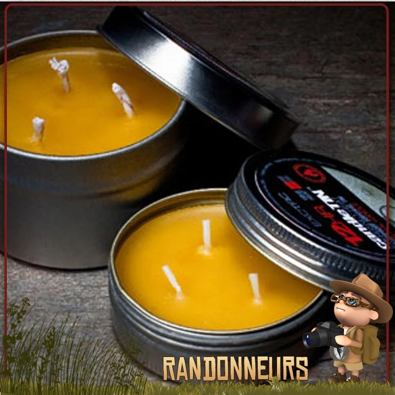 La CandleTIN est une Bougie de survie longue durée (6 heures) compacte pour l’éclairage, chauffage et chauffe plat, idéale pour kit de survie