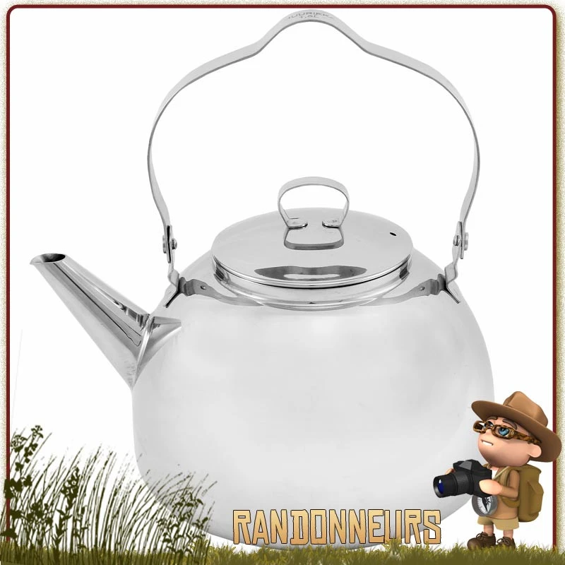 Large poignée de suspension dorsales pour permettre de suspendre la bouilloire au dessus d’un feu de bois