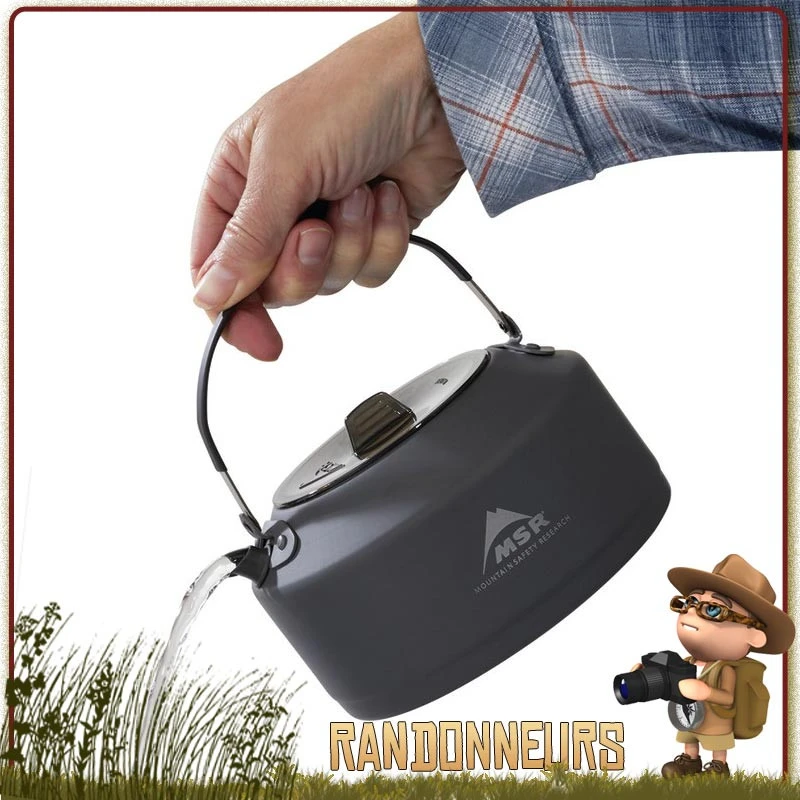 Bouilloire MSR en aluminium hard anodisé, ultra légère, robuste, cette bouilloire de camping est particulièrement adaptée à la randonnée légère et au trekking.