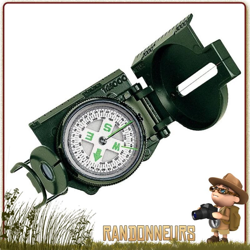 Boussole HERBERTZ, modèle « RANGER », boîtier métal gris/vert, sur liquide d’amortissement, avec viseur.