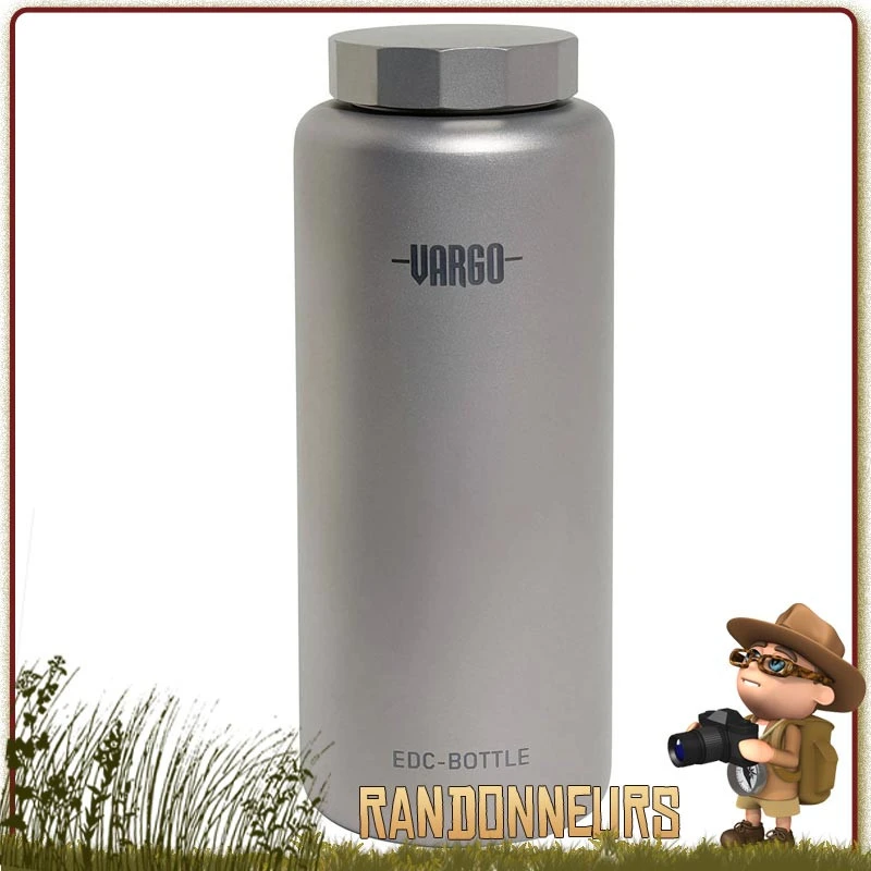 Gourde bouteille en Titane Vargo, modèle EDC avec grande ouverture, pour la randonnée, survie et bushcraft, ni trop grande, ni trop petite, est une bouteille adaptée à tous les sacs à dos de randonnée légère , kit EDC, Preppers et Survie.