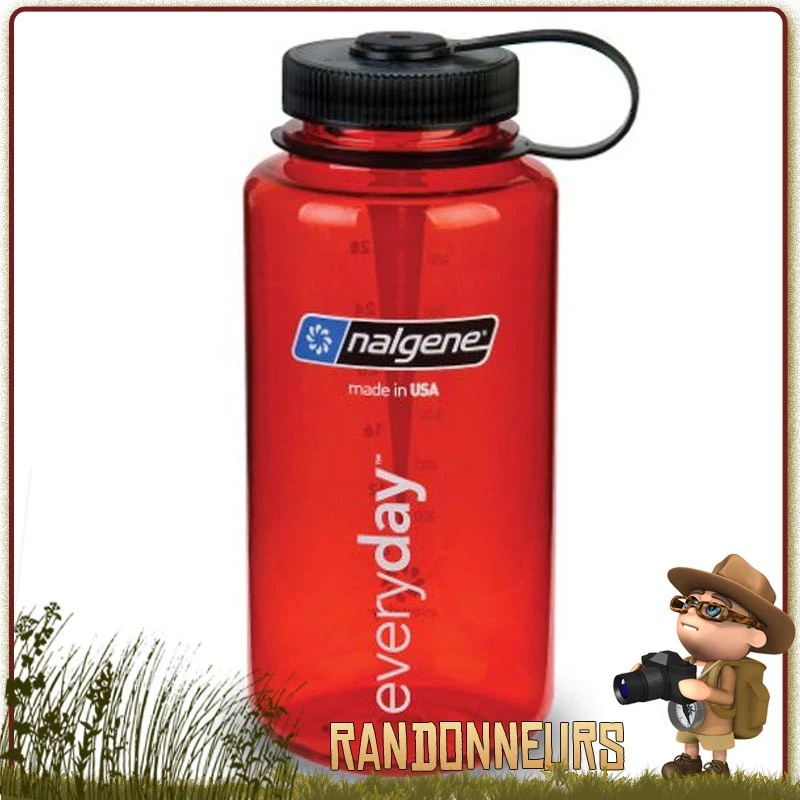 Gourde bouteille Nalgene avec grande ouverture, pour la randonnée, survie et bushcraft, ni trop grande, ni trop petite, est une bouteille adaptée à tous les sacs à dos de randonnée légère , kit EDC, Preppers et Survie.