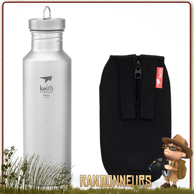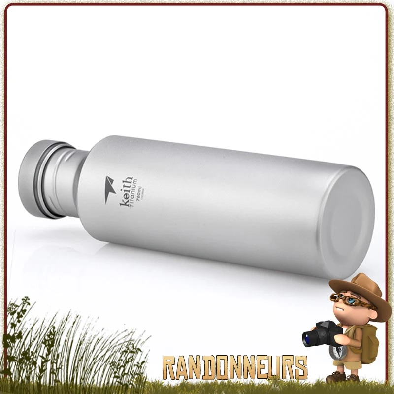 Gourde bouteille ultra légère en titane, la bouteille Sport de randonnée légère Keith Titane, de volume 70 cl, est ultra robuste et surtout très appréciée par les randonneurs du fait de son poids plume de 110 g seulement.