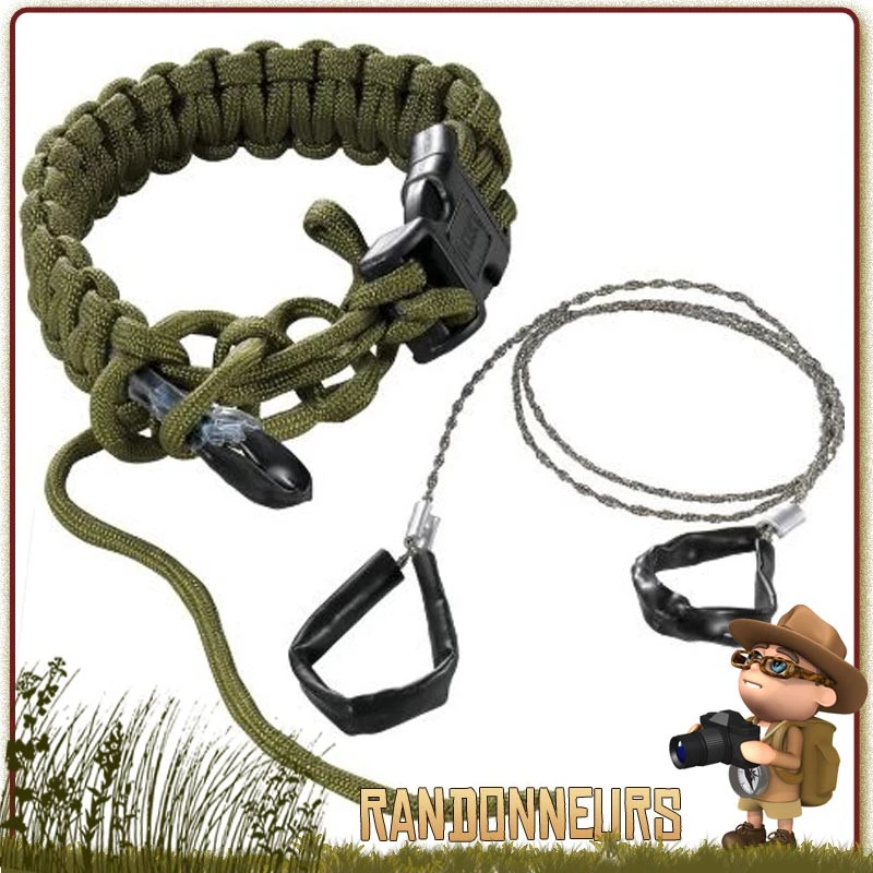 Une fois démontée du bracelet, la scie ne peut être remise, sauf si vous procédez à un nouveau tressage de la paracorde détressée.