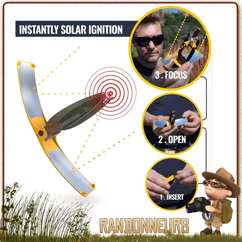 Il est simple d’utilisation : déployez simplement ses miroirs, pointez-les en direction du soleil et orientez le rayonnement sur la zone à embraser. Et le tour est joué !