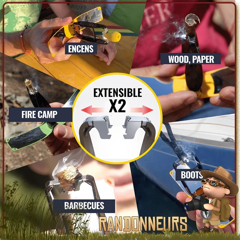 Le Suncase Gear allume tout type de combustible: bois, papier brun, amadou, tabac, encens, paille, brindille, charbon, carton, (…). Equipé d’une pince métallique extensible (x2), il s’adapte à tous types de combustibles et allume barbecue comme feux de camp.