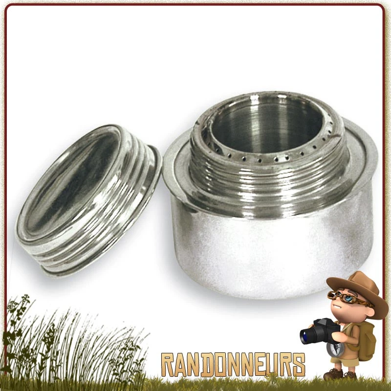 Un régleur de flamme commercialisé en supplément, permet de régler plus finement l’intensité de chauffe du brûleur réchaud à alcool Inox Tatonka