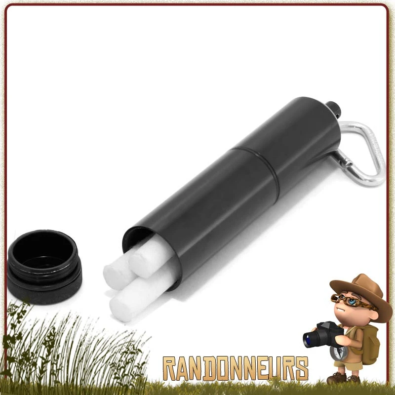 Kit Allume Feu Etanche de Survie Coghlans, avec les accessoires pour allumer un feu (briquet, amadou) et mousqueton
