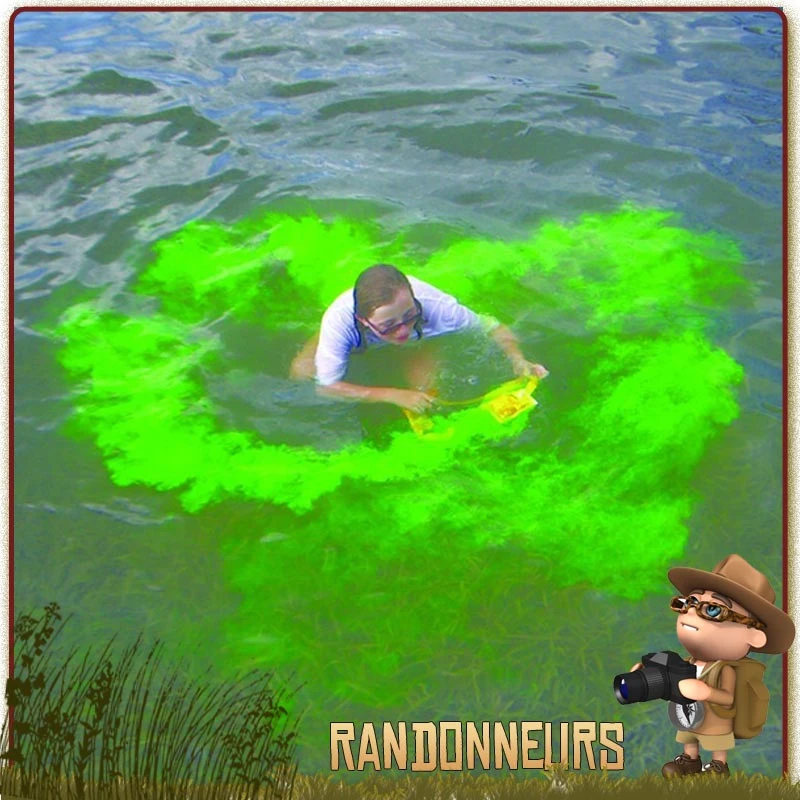 Ce produit peux être vu a plus de 1 500m pendant environs 30 à 40 minutes, selon les conditions de l’eau, mais peux durer plus longtemps sur de la neige.