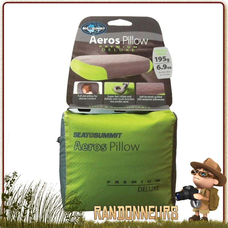 Oreiller gonflable Aeros Deluxe Premium Sea To Summit ultra léger et compact, avec housse de rangement fournie