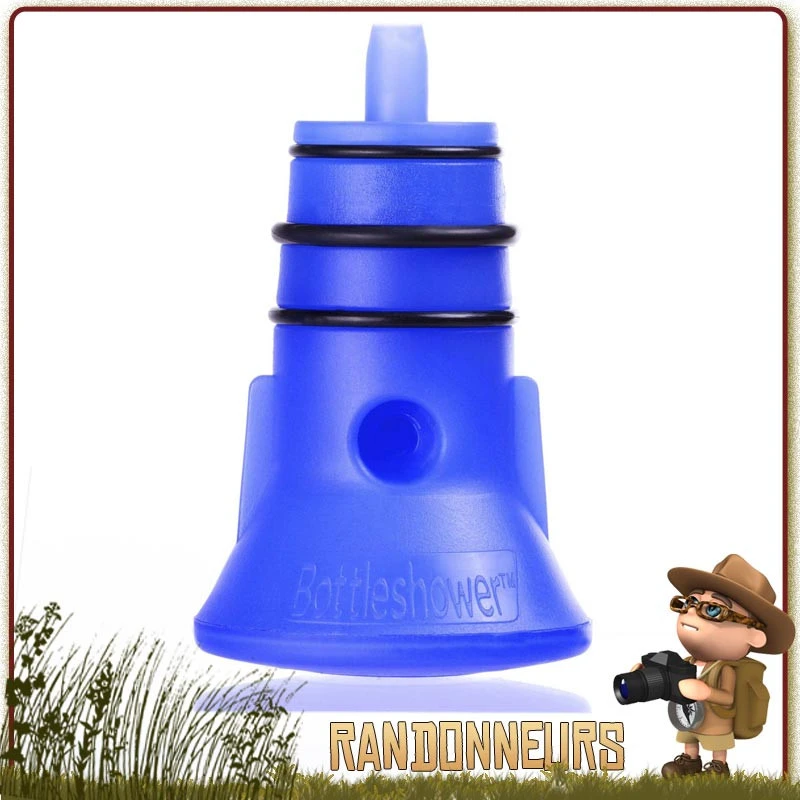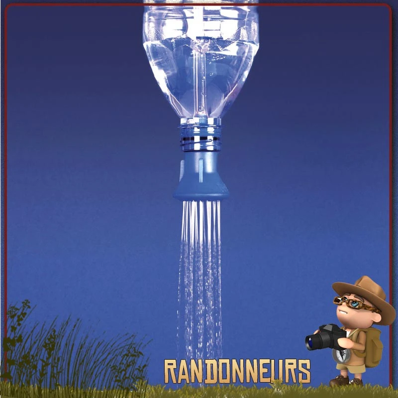 Ce pommeau s’adapte sur une grande majoritĂ© de bouteilles d’eau minĂ©rales en vue de crĂ©er facilement et rapidement, une douche portable de camping ultra light