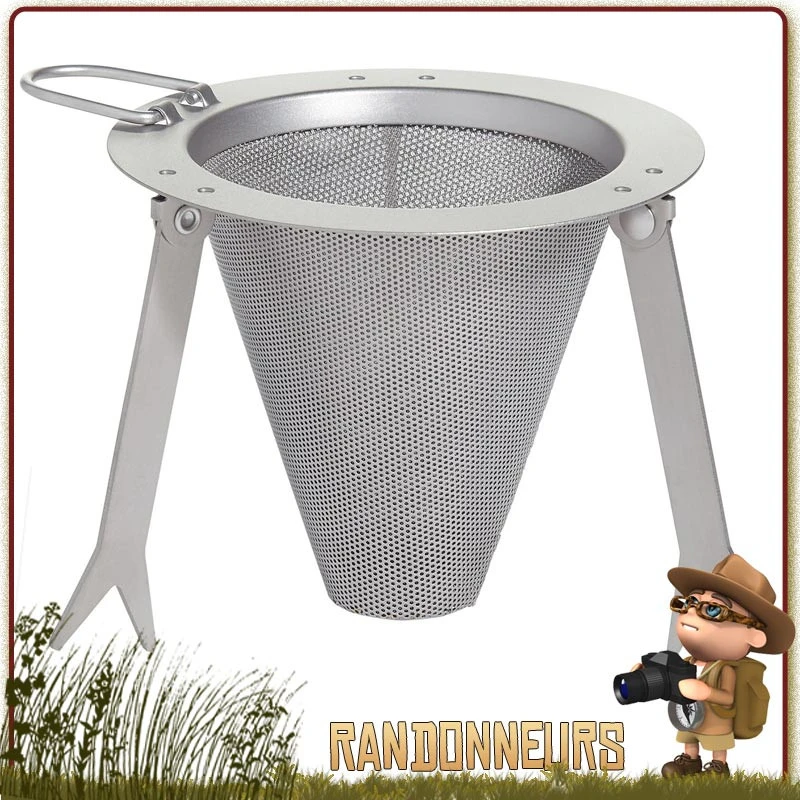 En métal titane ultra léger, le Titanium Travel Coffee Filter Vargo se compose d’un cône filtrant et de pieds repliables à poser sur une tasse