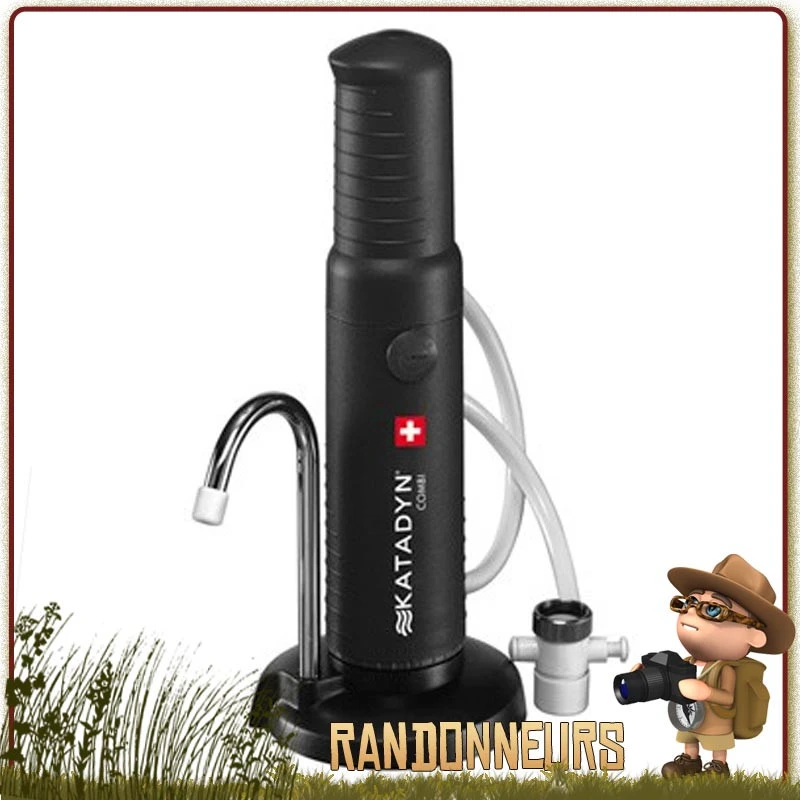 Le Filtre eau portable Combi Plus Katadyn combine un filtre céramique à imprégnation argent et un filtre charbon actif pour réduire les substances chimiques.