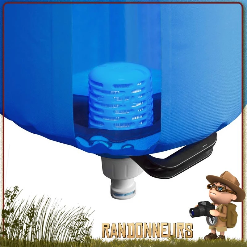 Il suffit de remplir le réservoir d’eau souple à partir d’un robinet, ruisseau, une rivière ou un lac, même dans les pays du tiers monde, et profiter de l’eau potable propre et salubre tout de suite.