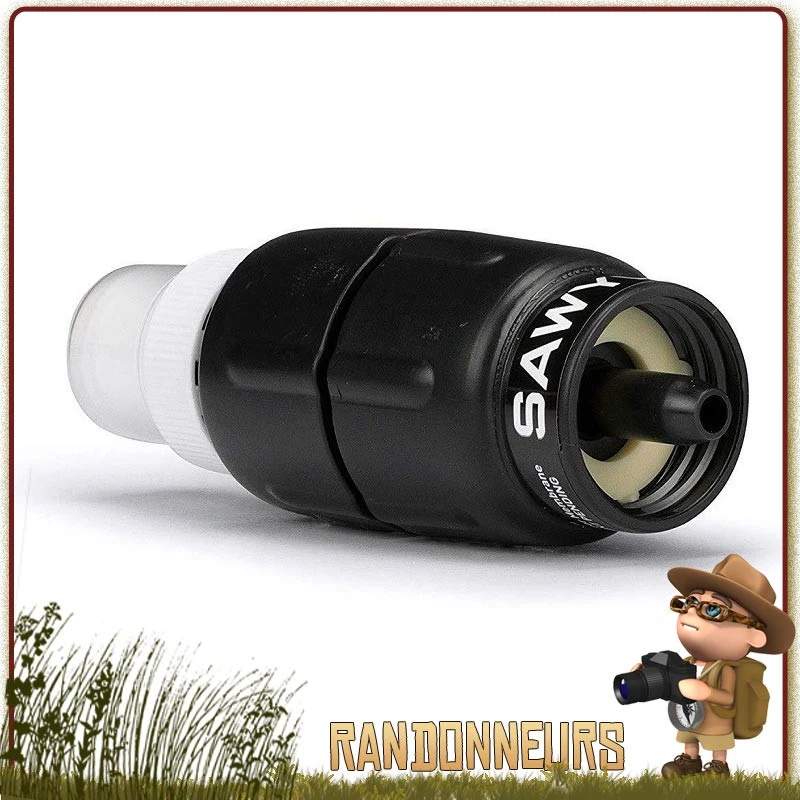 Cette paille de filtration Micro Squeeze Sawyer , multi usages (paille, boisson directe, en ligne sur poche hydratation, gravité) est l’un des meilleur filtre du marché, de par ses capacités de filtrations (0.1 microns sur 375 milles litres), son poids plume (50 g) et ses fonctionnalités et facilité d’utilisation.