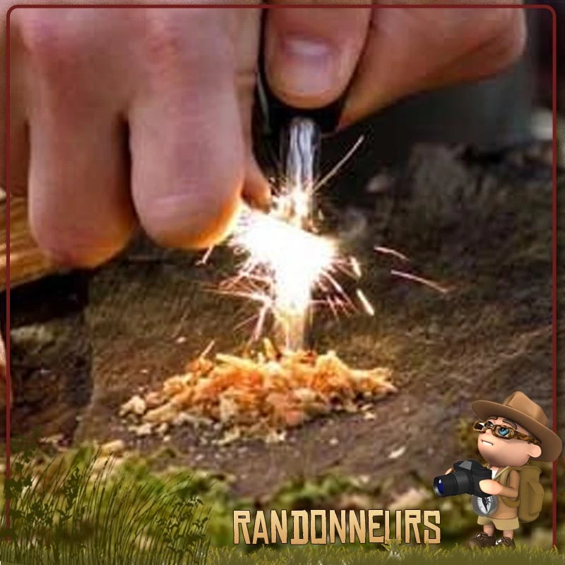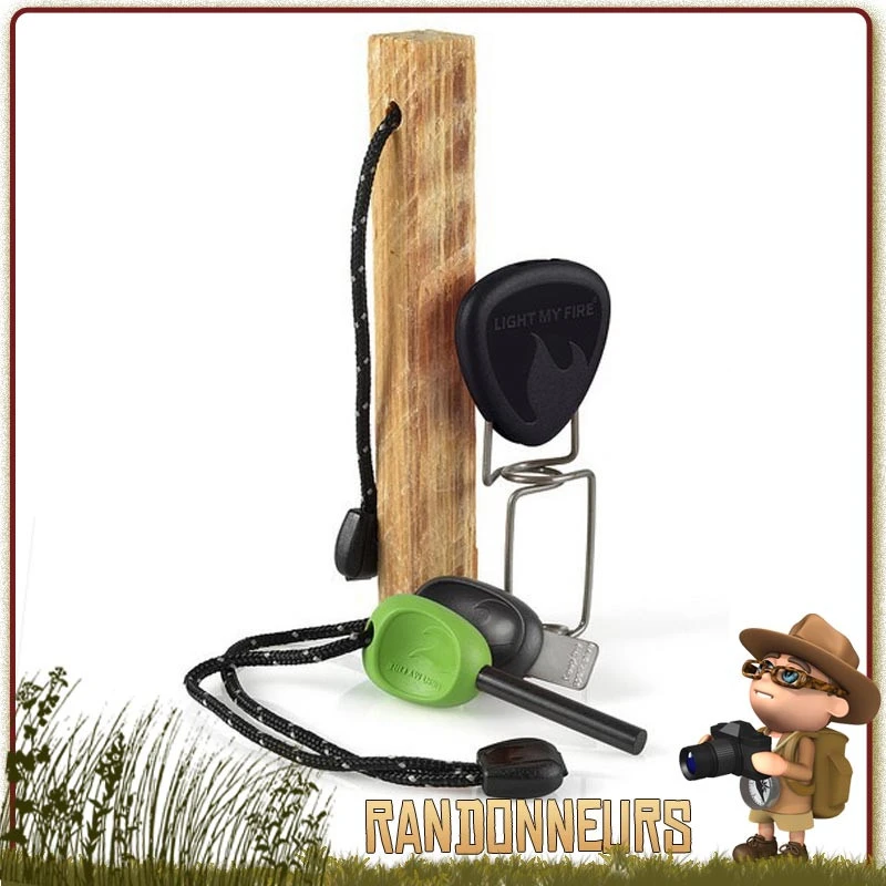 « FireSteel » de Light My Fire. A l’origine développé pour le Département de la Défense Suédois, FireSteel est un flash de génie. Son étincelle rend la construction du feu facile à n’importe quelle altitude. Utilisé par un certain nombre d’armées autour du monde, la fiabilité suédoise de FireSteel lui a déjà fait des adeptes, les chasseurs, pêcheurs, campeurs… Son étincelle lumineuse peut être employée comme signal de secours. Avec sifflet de secours.