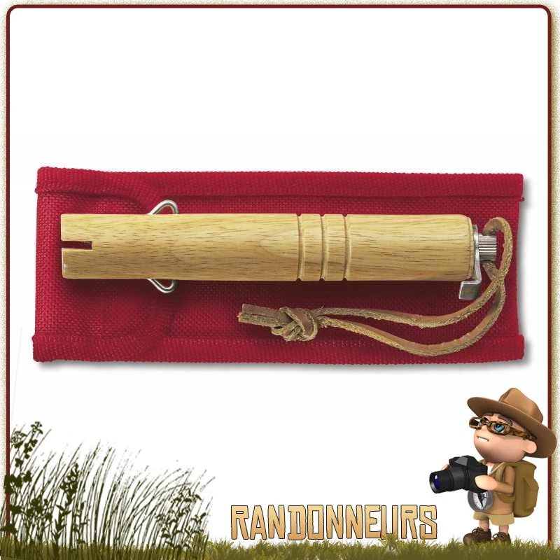 La broche en acier inox télescopique se range entièrement dans le manche en bois pour pouvoir la transporter en toute sécurité, dont ce dernier possède aussi un lanyard en cuir
