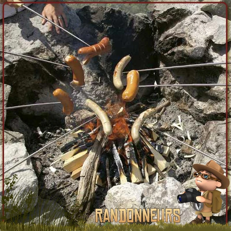 La Broche Fourchette Barbecue Victorinox devient un ingénieux support de cuisson pour de nombreux aliments (saucisse, poisson, légumes) à placer au dessus d’un feu de camp bushcraft nature.