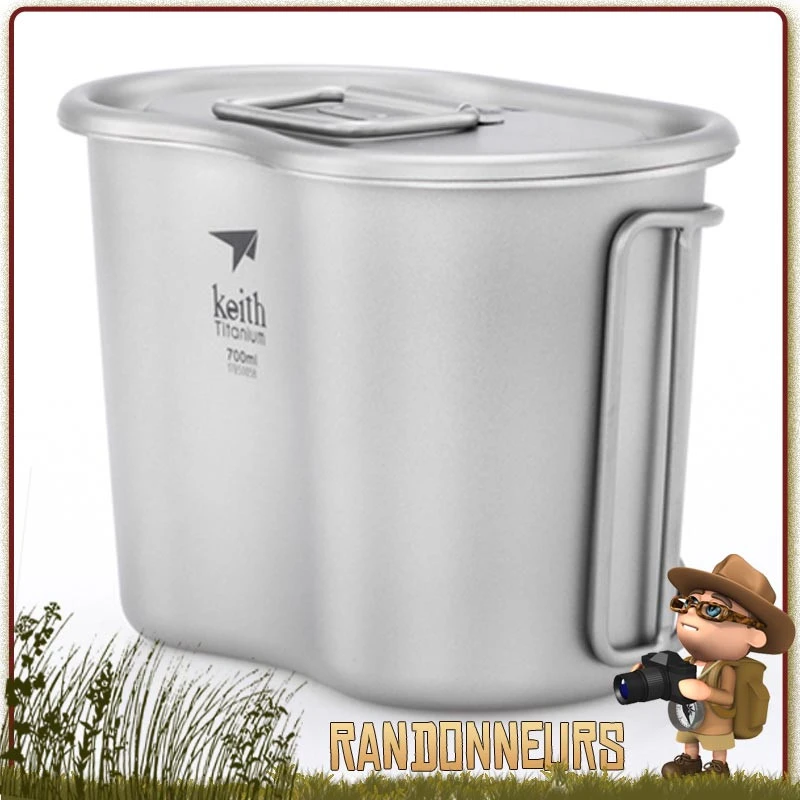 Gourde militaire ultra légère en titane, le gourde armée légère Keith comprend en plus un quart et son couvercle, de volume 110 cl, est ultra robuste et surtout très appréciée par les randonneurs et du bushcraft survie du fait de son poids plume de 288 g seulement au complet, comprenant la gourde, le quart et le couvercle.