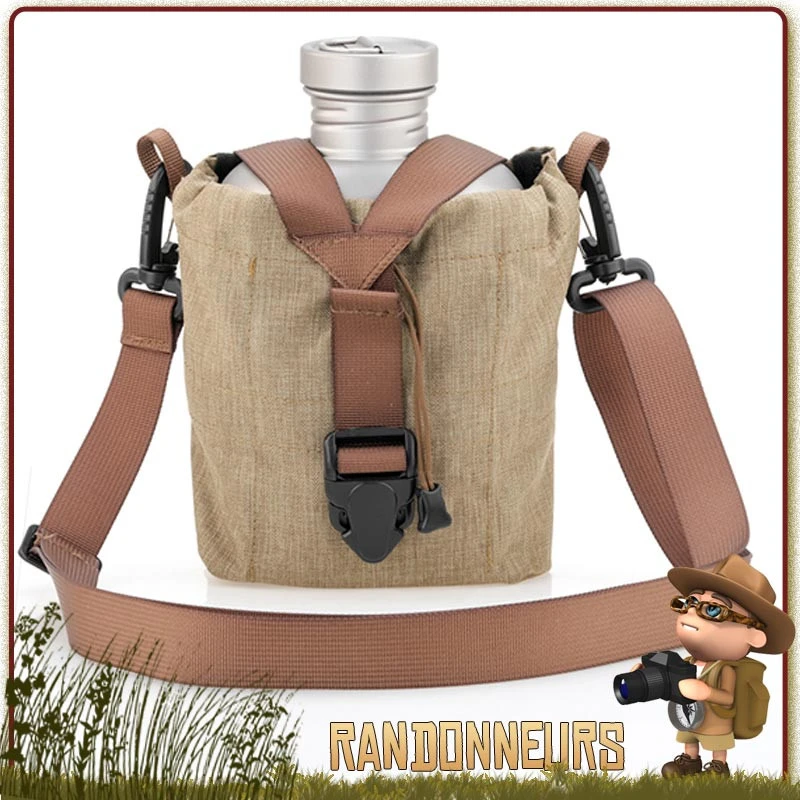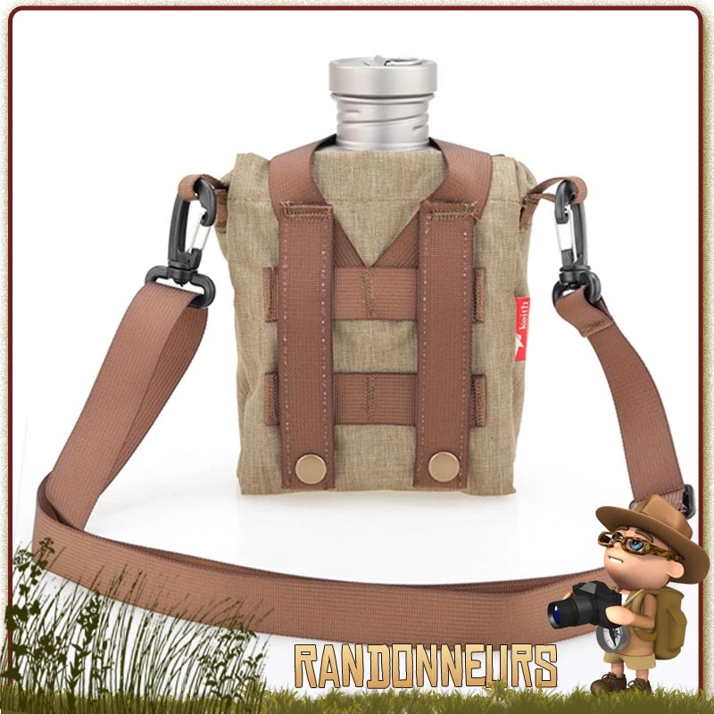 Set gourde militaire Keith Titane ultra robuste et surtout très légère, au complet avec son quart, couvercle et sa housse bandoulière ou fixation Molle
