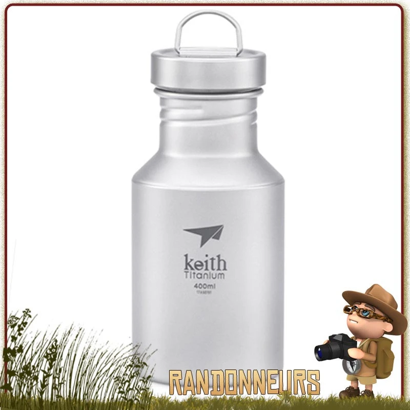 Gourde bouteille ultra légère en titane, la bouteille Sport de randonnée légère Keith Titane, de volume 40 cl, est ultra robuste et surtout très appréciée par les randonneurs du fait de son poids plume de 79 g seulement.