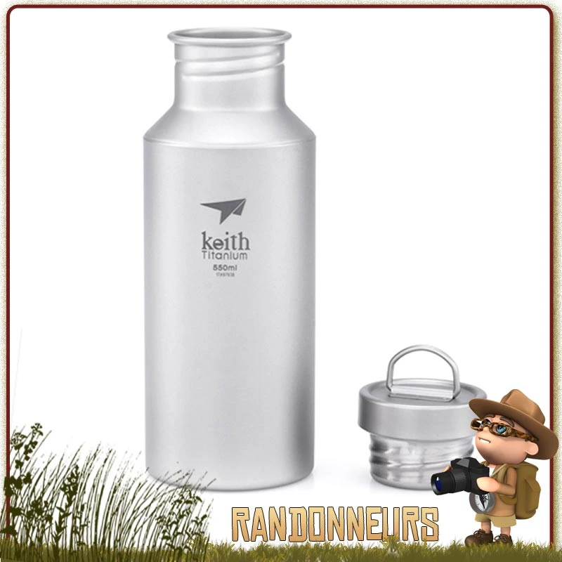 Gourde bouteille ultra légère en titane, la bouteille Sport de randonnée légère Keith Titane, de volume 55 cl, est ultra robuste et surtout très appréciée par les randonneurs du fait de son poids plume de 96 g seulement.