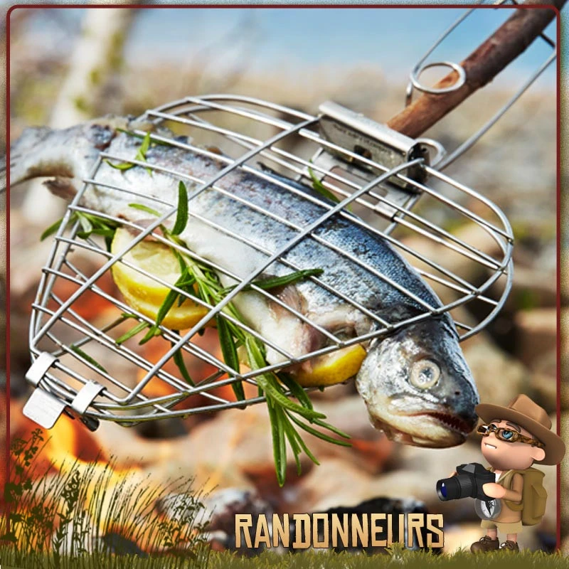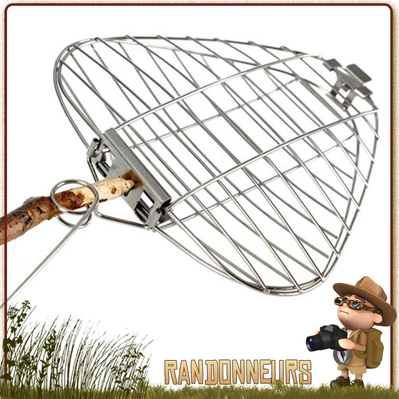 Ce grill, compact et léger, est composé de deux mâchoires clipsables qui permettent de maintenir votre aiment et le faire cuire facilement des deux côtés.