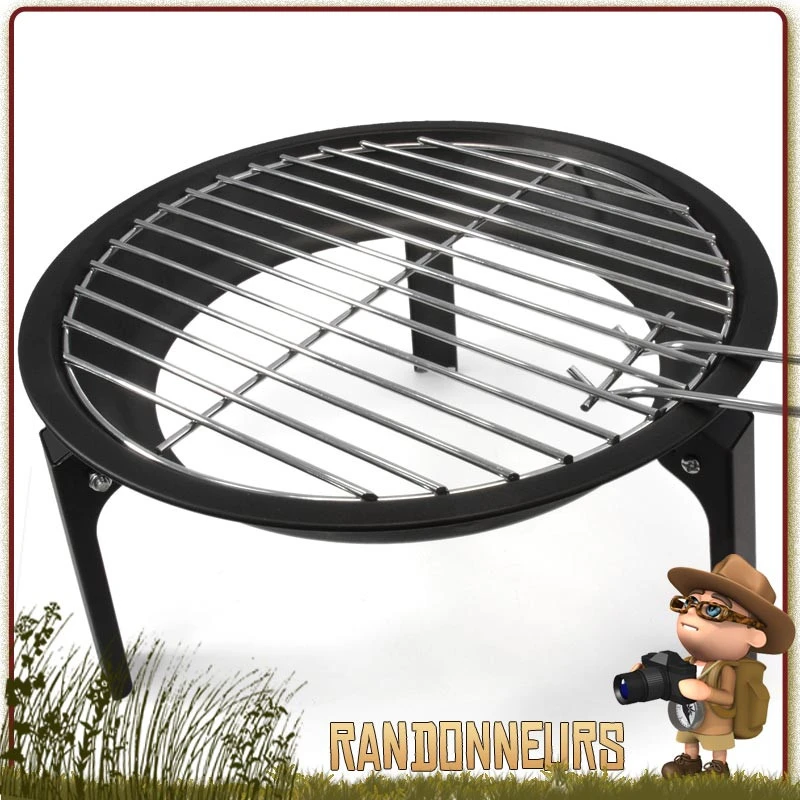 Grille de grill pour feu de camp bushcraft et nomade, le grill Campfire Origin Outdoors est compact et facilement transportable gràce à ses trois pieds repliables.