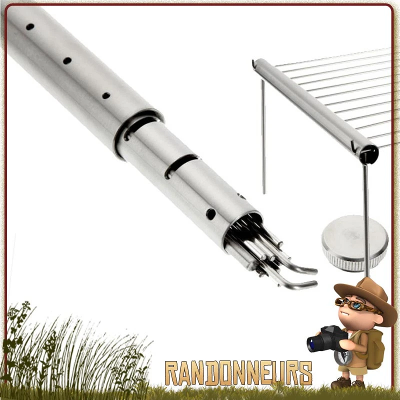 Entièrement démontable, les éléments du Grilliput DUO se rangent dans le tube le plus grand, où vont se placer le second tube, les pieds et les grilles transversales.