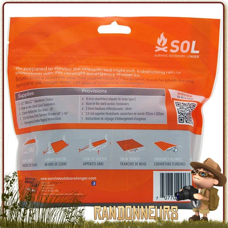 Kit abri d’urgence et survie SOL Survive Outdoors Longer pour répondre à tous les besoins de protection (pluie, vent, neige…) en randonnée