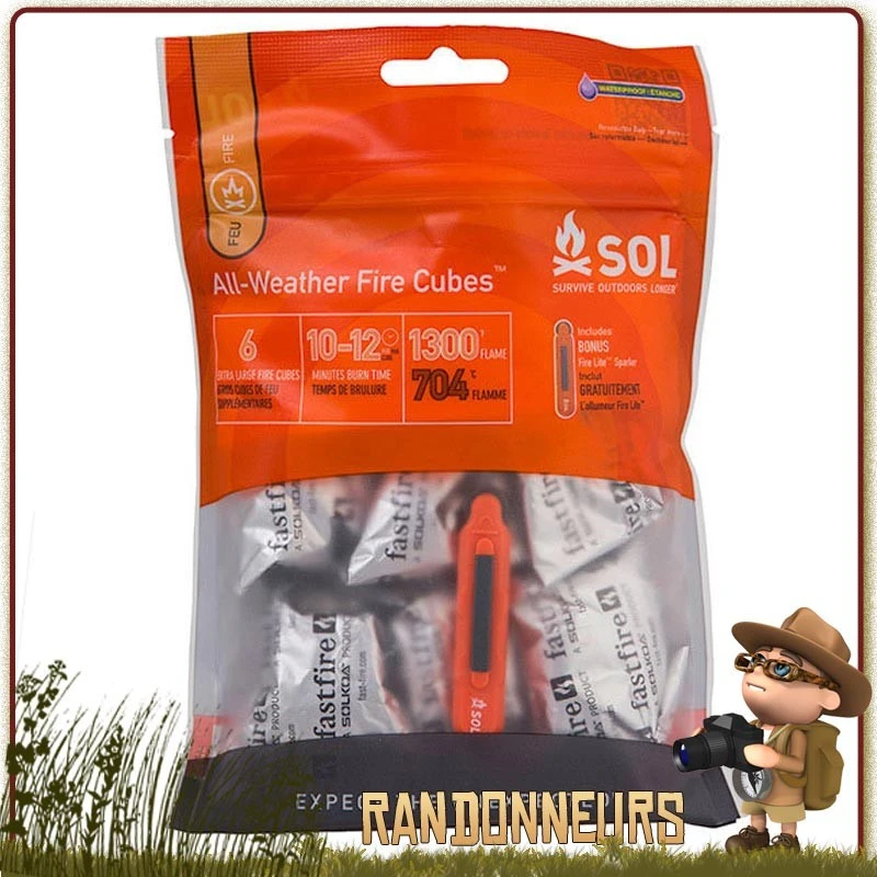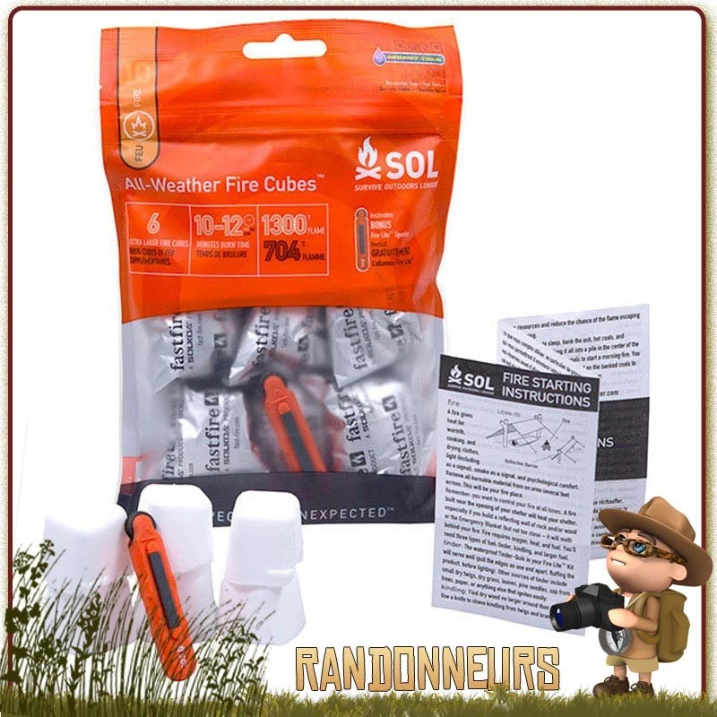 Kit Allume feu Tout Temps SOL avec 6x cubes allume-feux et briquet magnésium