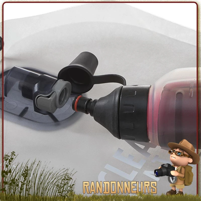 Mais aussi, il vous sera possible de remplir n’importe qu’elle gourde de randonnée, ou de coupler le TrailShot à une poche d’hydratation qui propose un embout de sortie goulot