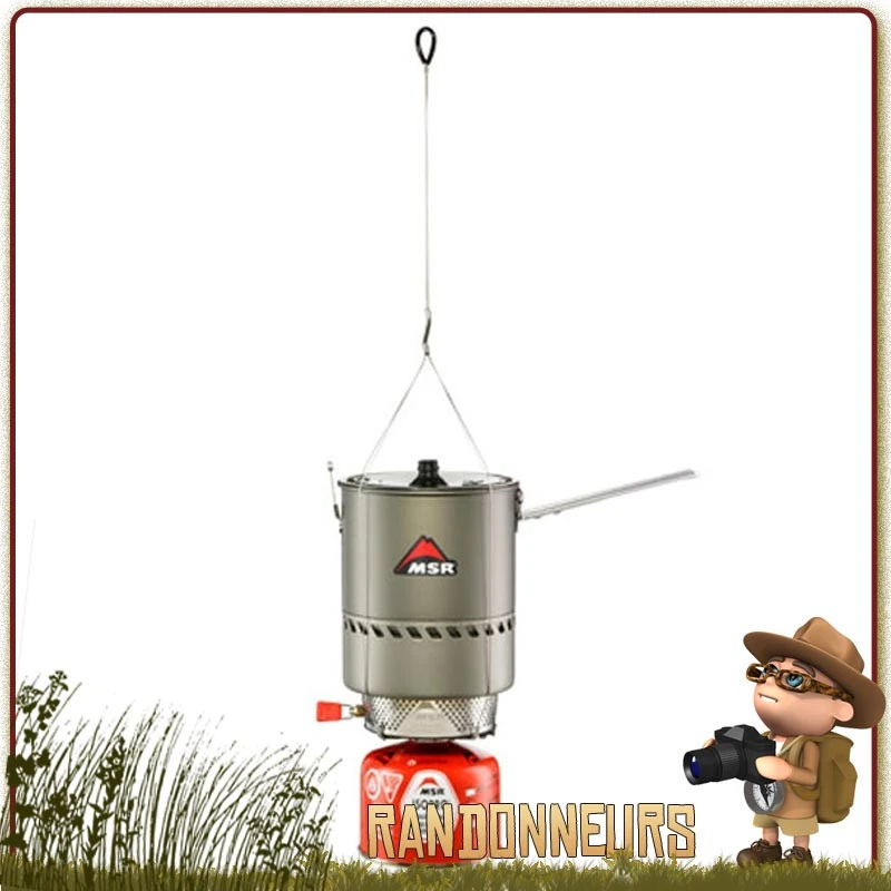 Kit Suspension Réchaud et Popote MSR, acier inoxydable robuste et compact pour suspendre un réchaud gaz Réactor MSR ou une popote de diamètre entre 8 et 12 cm au dessus d’un réchaud ou feu de camp.