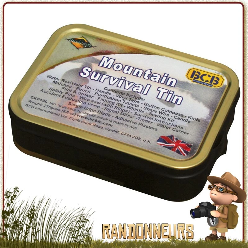 Kit de Survie Randonneurs en Montagne BCB en boite métallique