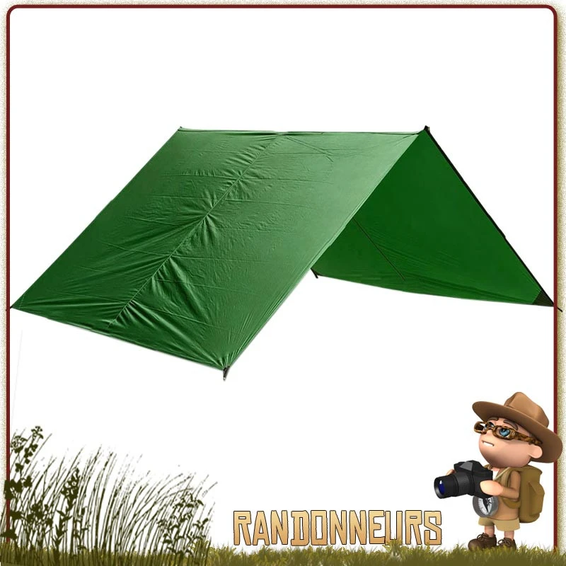Ce Tarp robuste colonne d’eau 3000 mm est déperlant et résistant aux UV, idéal pour un campement bushcraft nature par temps humide et pluvieux.