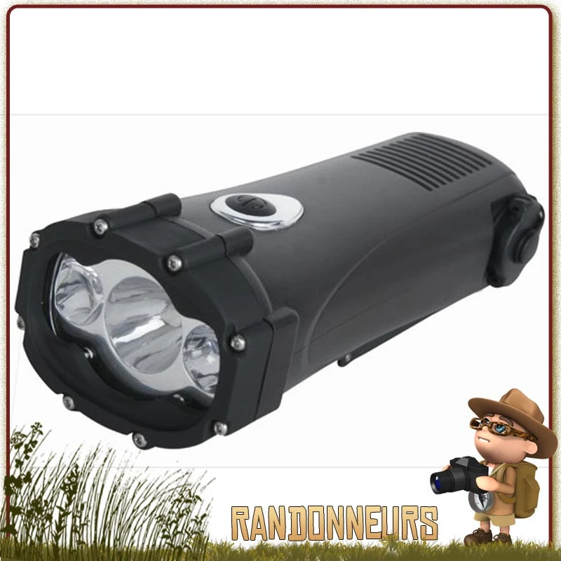Lampe Torche Dynamo SHARK Power Plus, étanche jusqu’à 10 mètres, LED ultra brillante de 1 W.