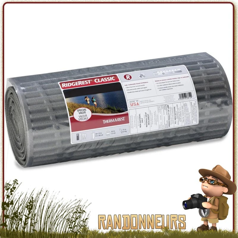Le matelas 3 Saisons RidgeRest Classic Thermarest isole du froid du sol (la plus grande déperdition de chaleur en couchage camping vient du sol et de la tête)