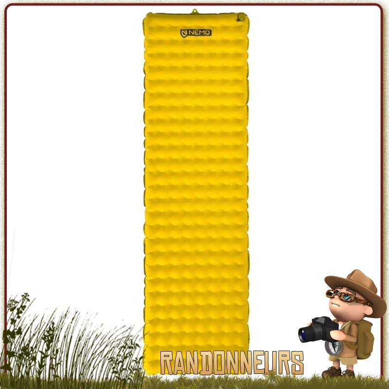 Matelas gonflable ultra léger de forme Rectangulaire, le Nemo Tensor est léger et confortable avec ses 8 cm d’épaisseur pour des bivouacs sur 3 saisons.