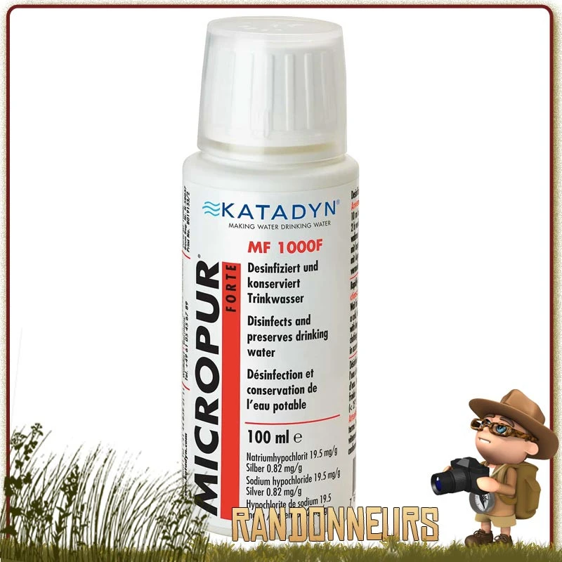 Flacon 100 ml de solution désinfectante pour l’eau de boisson en randonnée et voyage, Micropur Forte Liquide MF 1000 F Katadyn.