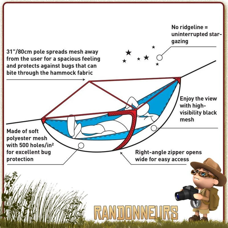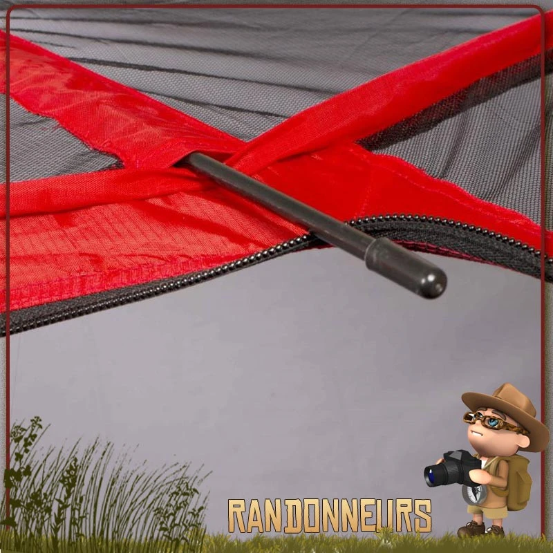 Un petit Arceau central permet d’écarter le filet par rapport au campeur en évitant ainsi que celui-ci ne touche son corps et assure un grand espace de vie