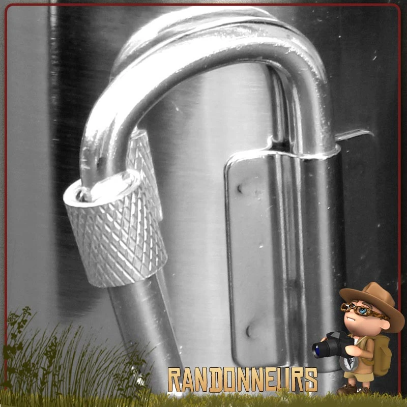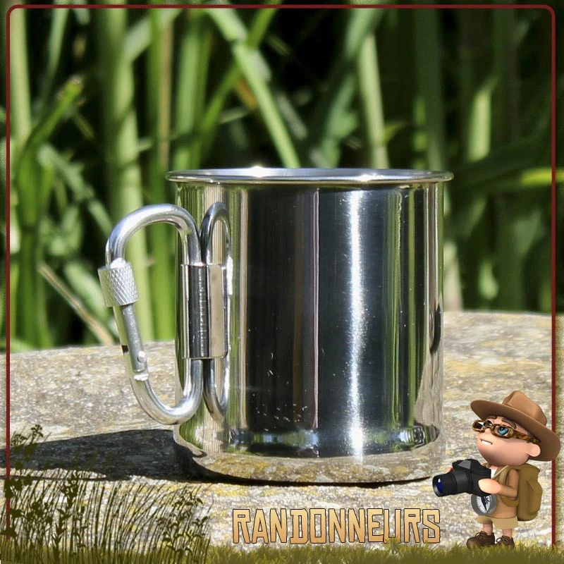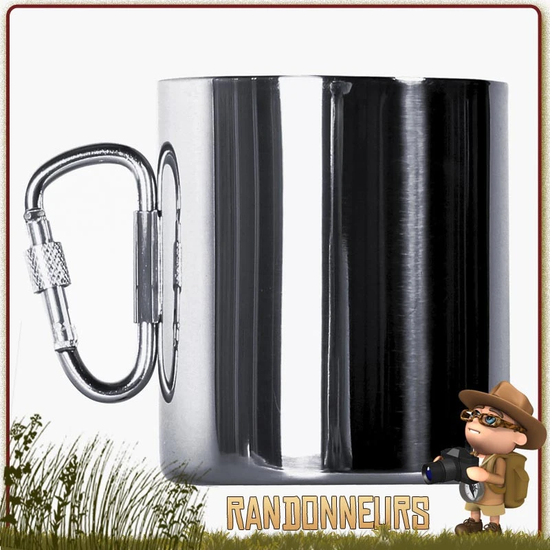 D’un volume utile de 33 cl, ce mug inox possède en guide de poignĂ©e, un mousqueton permettant d’accrocher la tasse Ă votre sac Ă dos.
