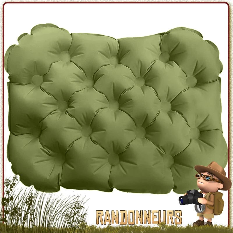 Oreiller gonflable ultra léger idéal pour les voyages et le bivouac.