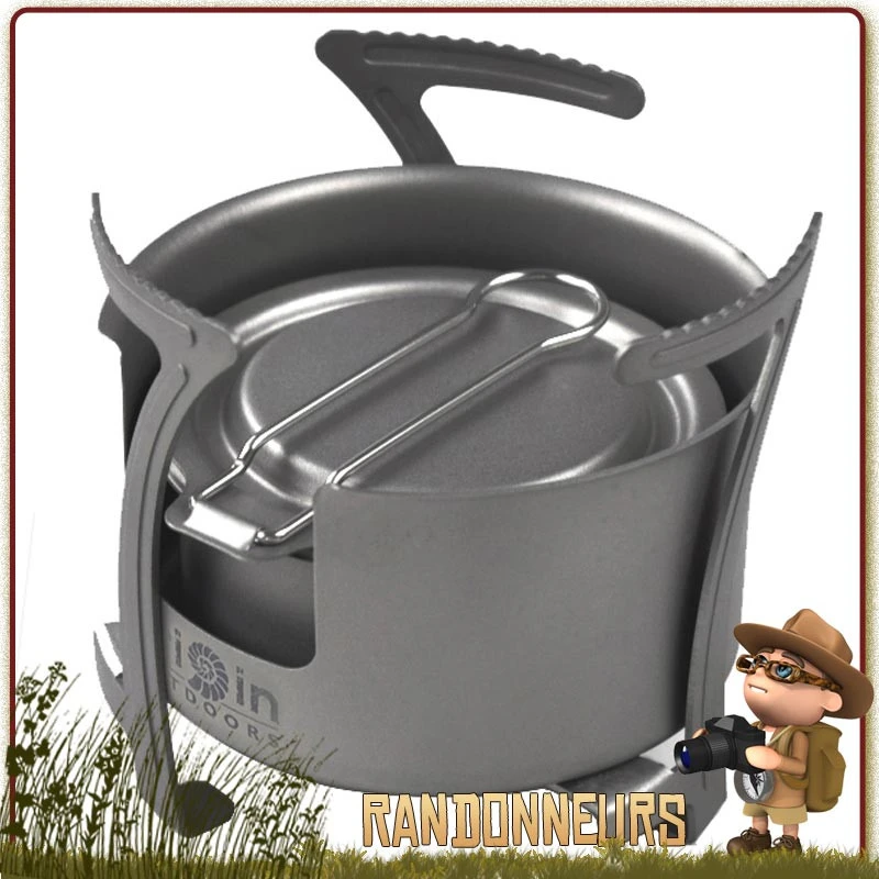 Réchaud multi-combustible de randonnée ultra légère, ce réchaud pliant titane fonctionne soit sur alcool liquide, soit avec des cubes d’essence solide ou du gel éthanol… et même du bois… Un must pour le bivouac nomade !!