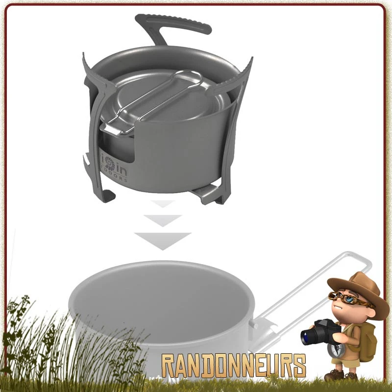 Une fois replié, l’ensemble de ce réchaud titane pourra se ranger dans un pot de 75 cl