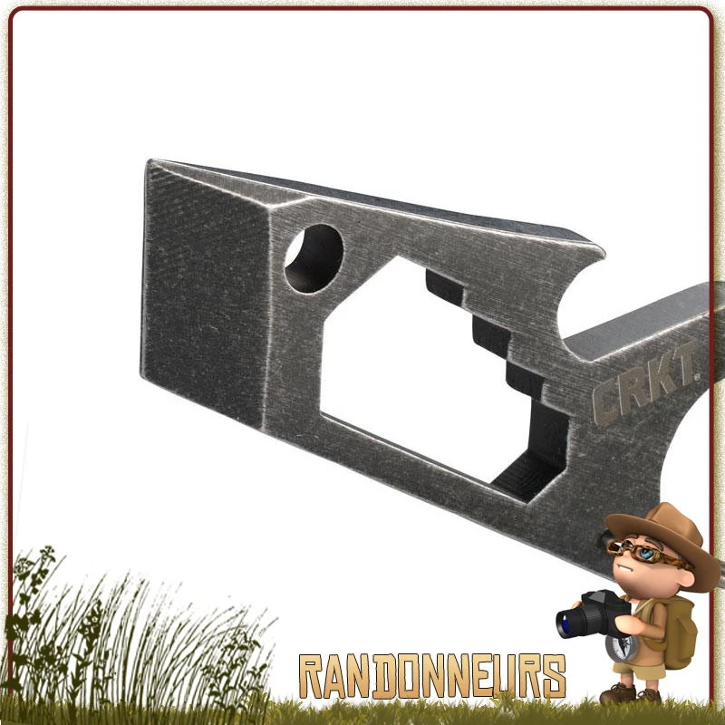 Multi-tools de survie pratique, le Pryma CRKT est un ingénieux survival tools tout en acier 3Cr13 finition stonewash, léger, compact et très fonctionnel.